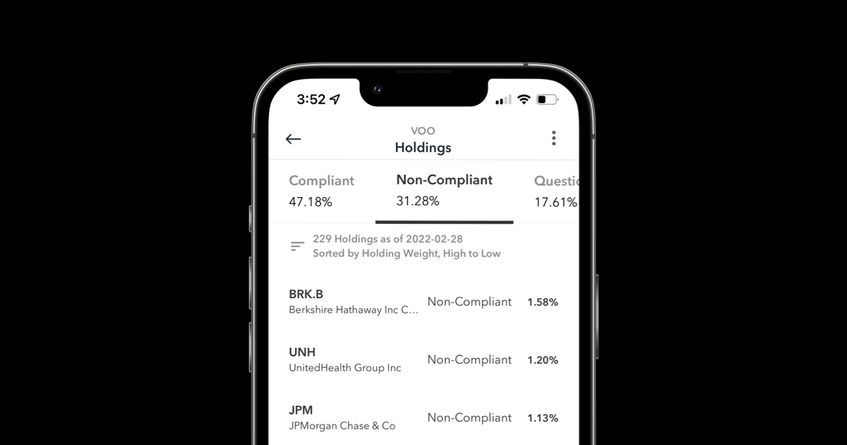 يتتبع صندوق Vanguard هذا مؤشر S&P 500 الذي يتكون من أكبر 500 شركة في الولايات المتحدة. أي صندوق استثمار متداول أو صندوق مشترك يتتبع المؤشر سيشمل تلك الشركات الموجودة ضمن المؤشر. ووفقًا لزويا، فإن ما يقرب من 31% من الصندوق يتكون من شركات لا تتوافق مع الشريعة الإسلامية.